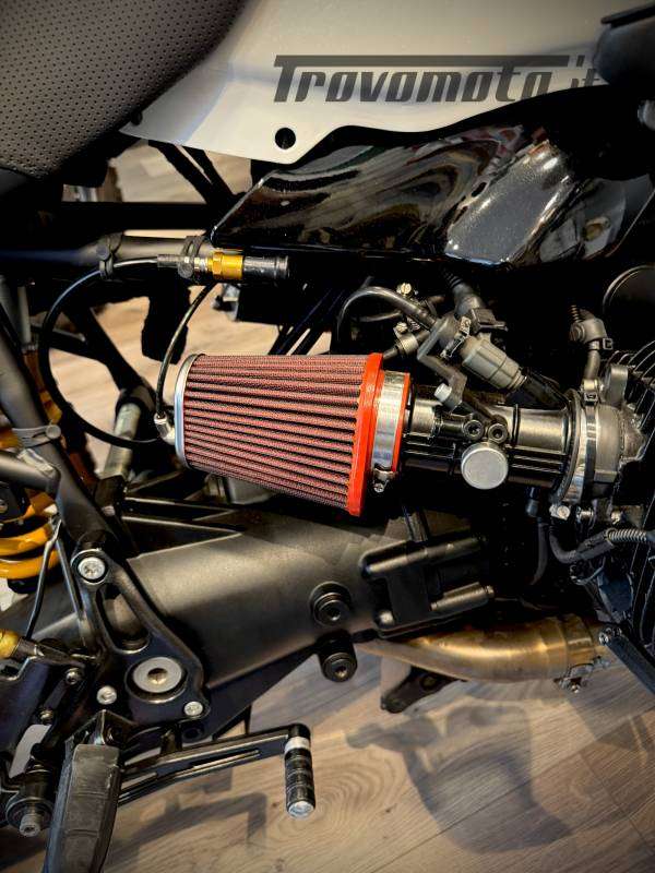 esterni, centralina Mappata con sostituzione Eprom della centralina con un aumento di circa 25cv di potenza, terminale di scarico Arrow titanio e carbonio, specchietti retrovisori cmc ricavato dal pieno, manubrio SRT Factory, e molti altri accessori