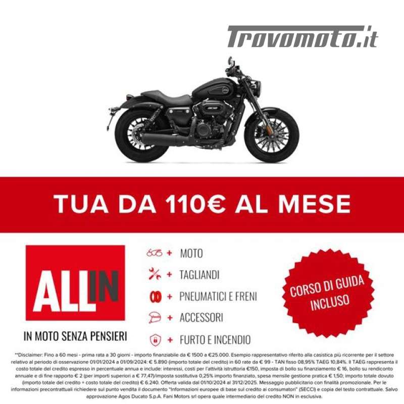 La moto è disponibile già in pronta consegna. Il prezzo è totalmente finanziabile. Ha 2 anni di garanzia ufficiale della casa.