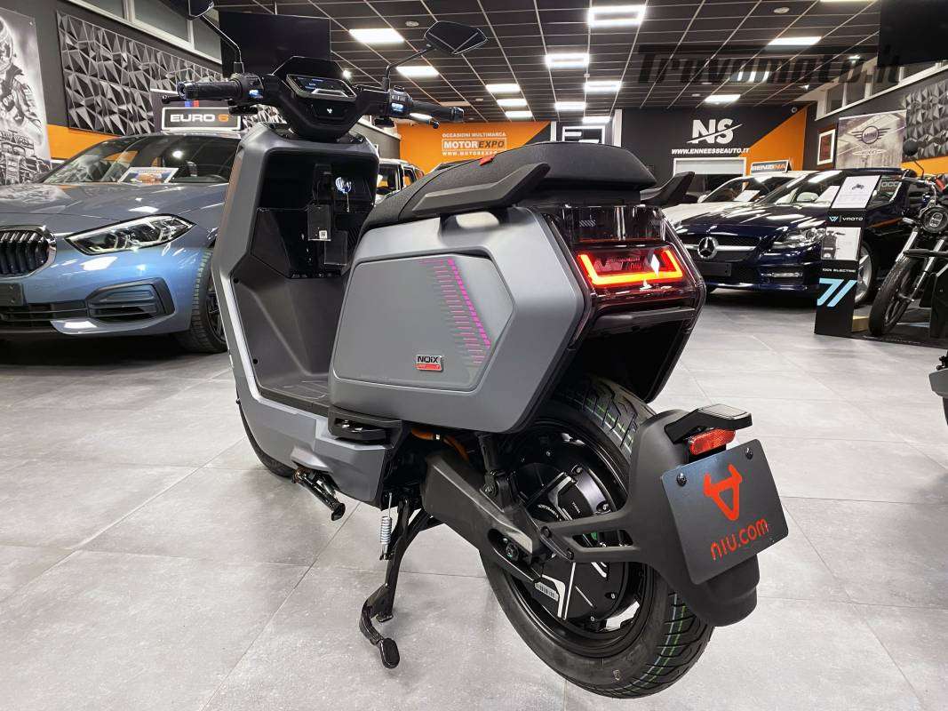 Il nuovo modello di casa NIU , NQIX 500, Con 9.0 Kw offre un'accelerazione eccezionale e una grande capacità di salita raggiungendo una velocità di 100 Km/h. Con il nuovo codice della strada il nuovo NQIX500 può circolare sia su AUTOSTRADA che TANGENZIALE con un autonomia superiore ai 100 Km. NQIX 500 ha in dotazione due batterie da 72V x 28Ah, integrate che si possono estrarre e caricare anche separatamente. Nuove funzionalità come il NIU LINK CROWN, sul Display a colori da 5" il monitoraggio della pressione dei pneumatici, il tachimetro, l'integrazione musicale e il tracciamento del percorso rendono NQiX lo scooter più intelligente sul mercato. Modifica le impostazioni, rispondi alle chiamate, traccia il tuo percorso e regola le modalità di guida, tutto con il tuo pollice. È il cockpit più intelligente su due ruote.