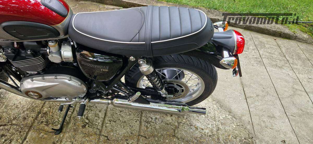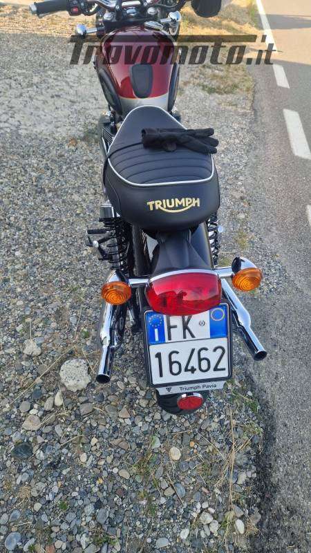 CAUSA GRAVE MALATTIA VENDO TRIUMPH BONNEVILLE T 120 IMMATRICOLATA IL 5/7/2024. ANCORA IN GARANZIA. SERBATOIO ALUMINIUM SILVER / CRANBERRY RED, PARARADIATORE, CAVALLETTO CENTRALE, SCRITTA ORO SELLA, STICKER "MADE IN ENGLAND". KM PERCORSI 1247 E SE NON FOSSI FINITO IN SEDIA A ROTELLE SENZA MARCE E SENZA MOTORE NE AVREI PERCORSI MIGLIAIA VISTA LA COMODITA' E MANEGGEVOLEZZA DELLA BONNEVILLE.